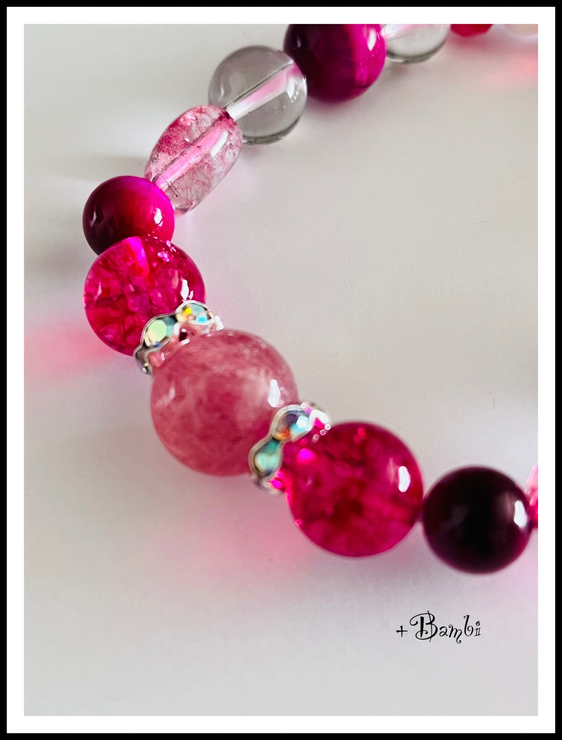 タンザニア産のピンクエピドートとストロベリークオーツが、恋愛運を高め、素敵な出会いを引き寄せます。